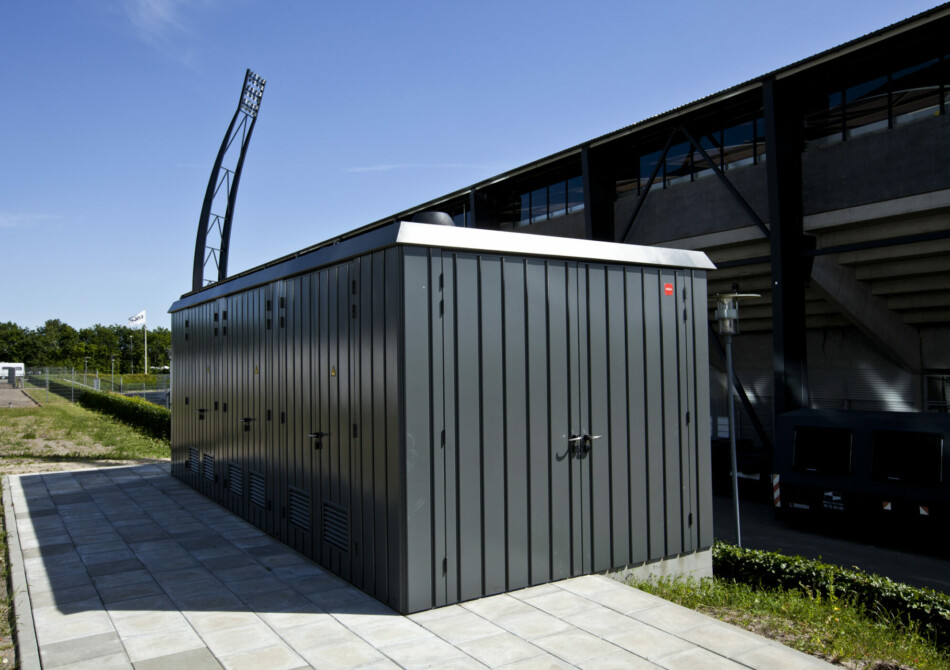 I samarbejde med Energi Midt har Priess A/S leveret en kundetilpasset transformerstation til Jyske Bank Boxen i Herning.