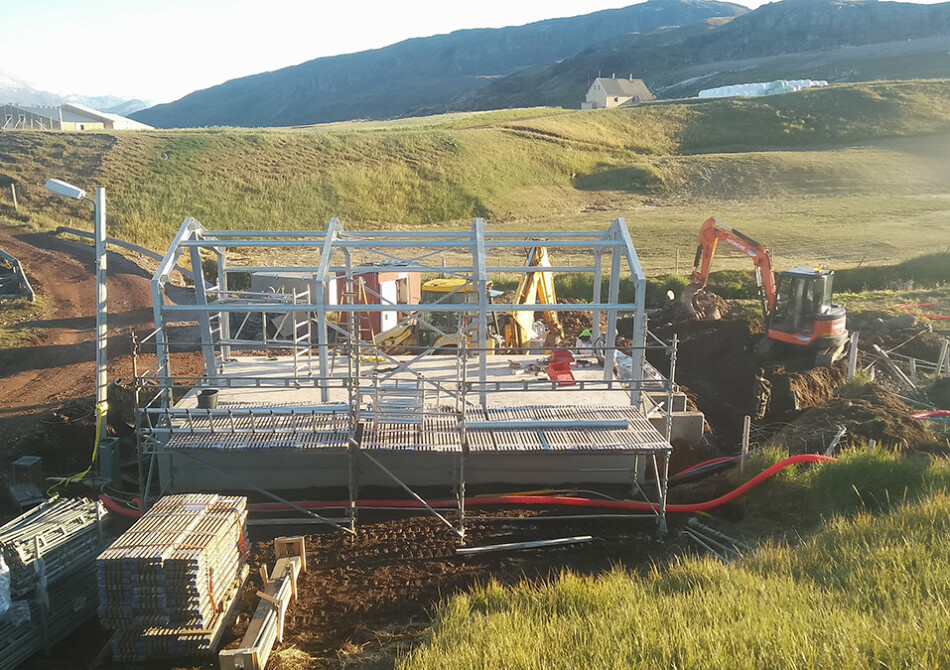 Hele pumpehuset og diverse hjælpemidler blev pakket på 19 paller og sendt fra Vinderup 5 uger før montagestart i Qassiarsuk.