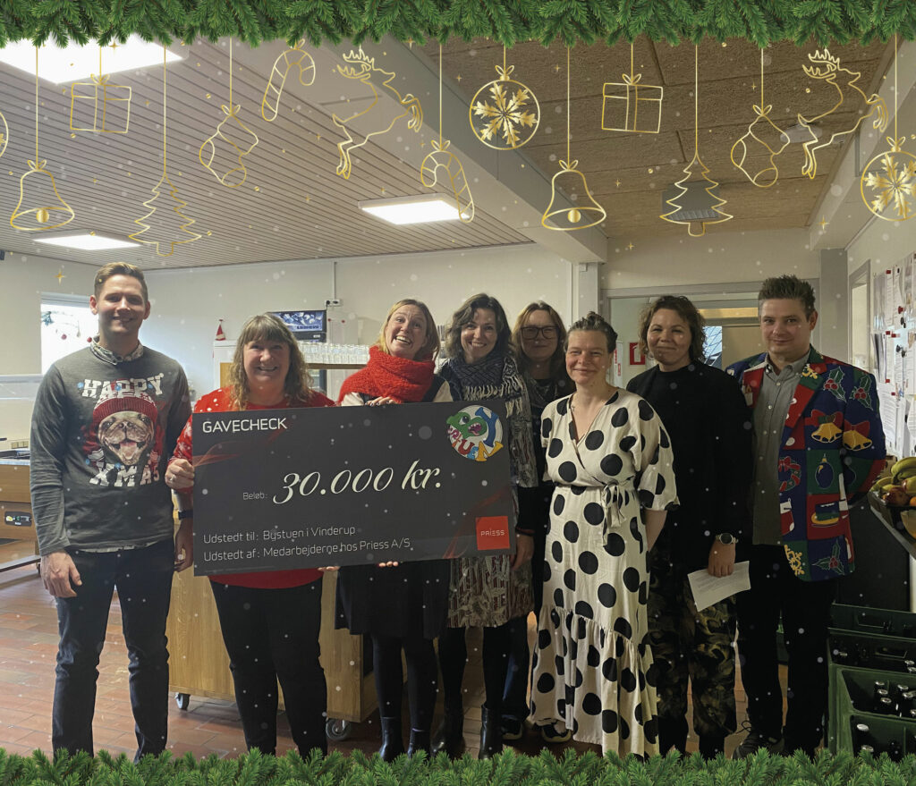 Hele 30.000 kr. blev det til, som personaleforeningen stolt kunne overrække. Alle medarbejdere hos Priess glædes over, at vi alle er med til at støtte op omkring det gode arbejde Bystuen yder til lokalområdet, hver eneste dag.