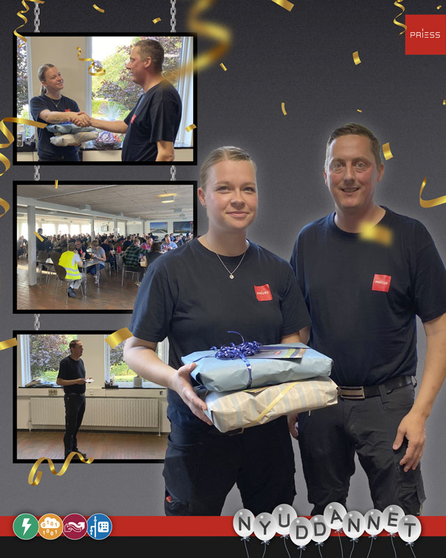 Endnu engang stort tillykke med uddannelsen, Mie! Og tak, fordi du har valgt at blive her hos Priess. Vi lover i hvert fald, at det bliver alt andet end kedeligt.
